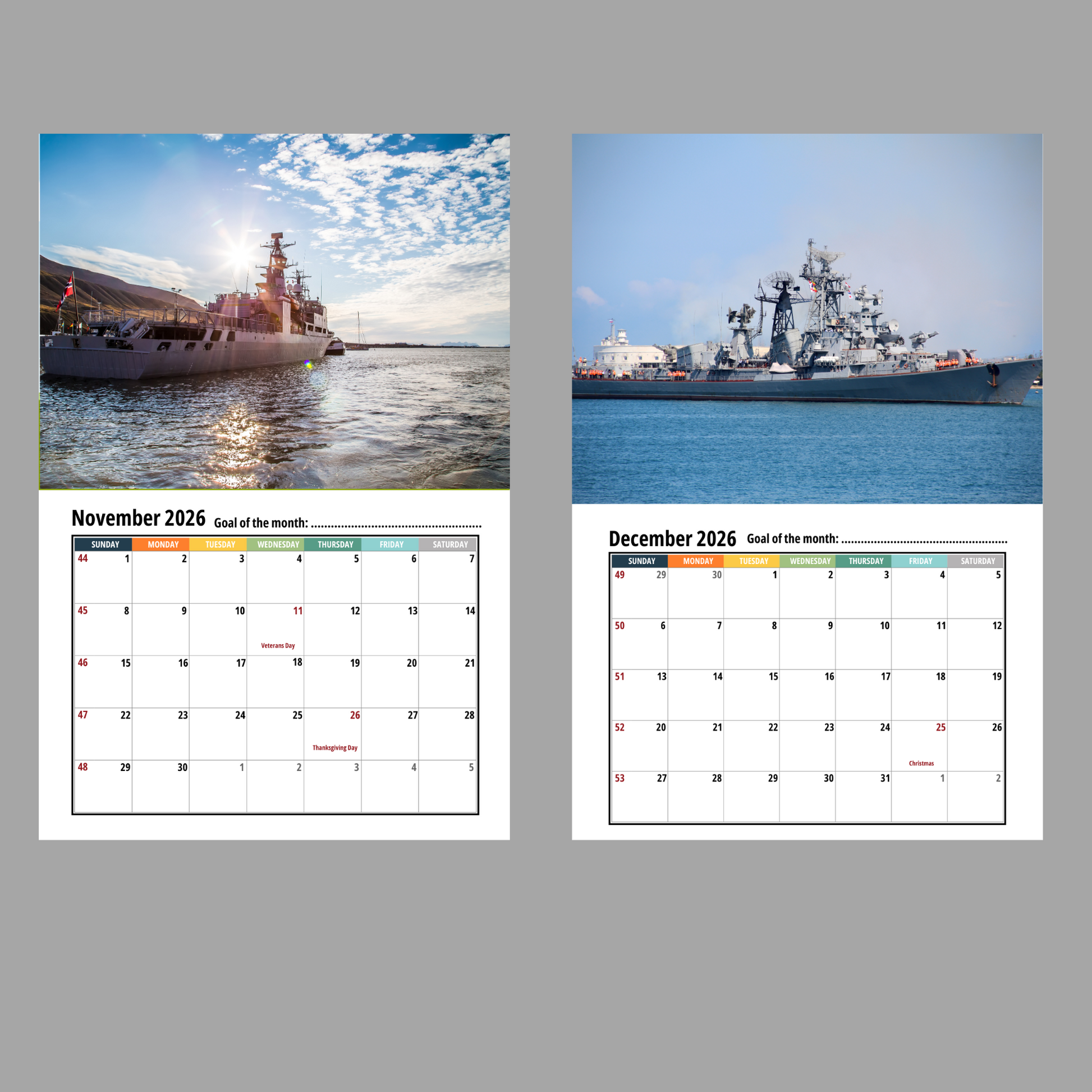 Chart your course for 2026 with this Battleship wall calendar! Featuring stunning artwork inspired by the classic naval strategy game, this calendar is a must-have for fans. Available in two sizes to fit your needs: Ledger vertical (11" x 16.5") for US & Canada and A3 vertical (29.7 x 42 cm) for the rest of the world. Plan your year and sink your opponent's fleet, one month at a time!