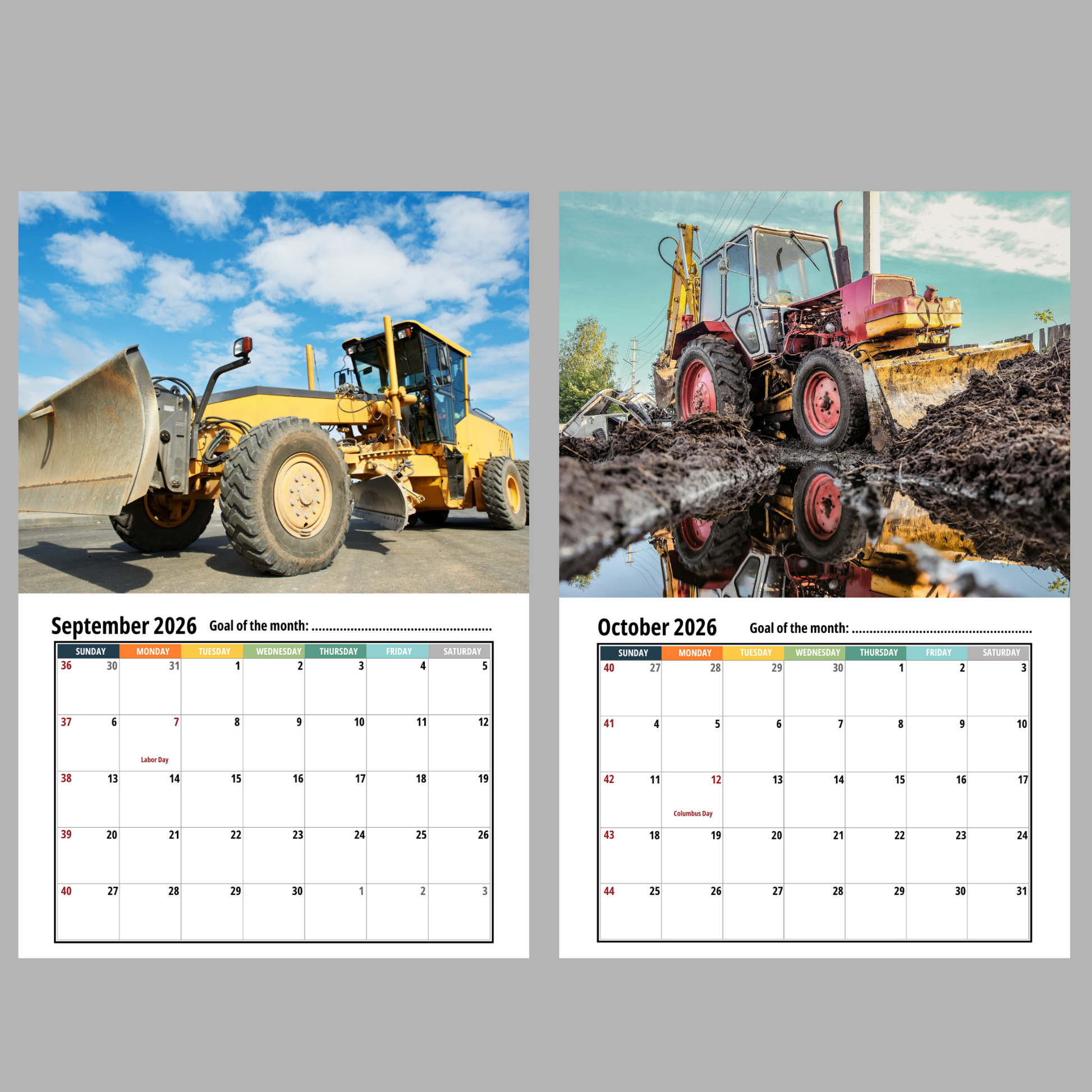 Tame the new year with our 2026 Bulldozer Wall Calendar! This high-quality calendar features stunning, full-color photos of powerful bulldozers in action. Perfect for construction enthusiasts, heavy machinery fans, or anyone who loves these earth-moving giants.