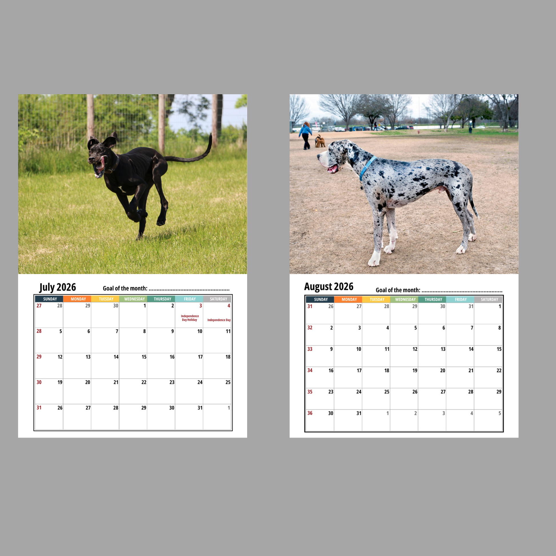 This 12-month Great Dane calendar is a perfect gift for birthdays, holidays, or a thoughtful treat for yourself. Its large grids provide plenty of space to jot down appointments, events, and special dates.